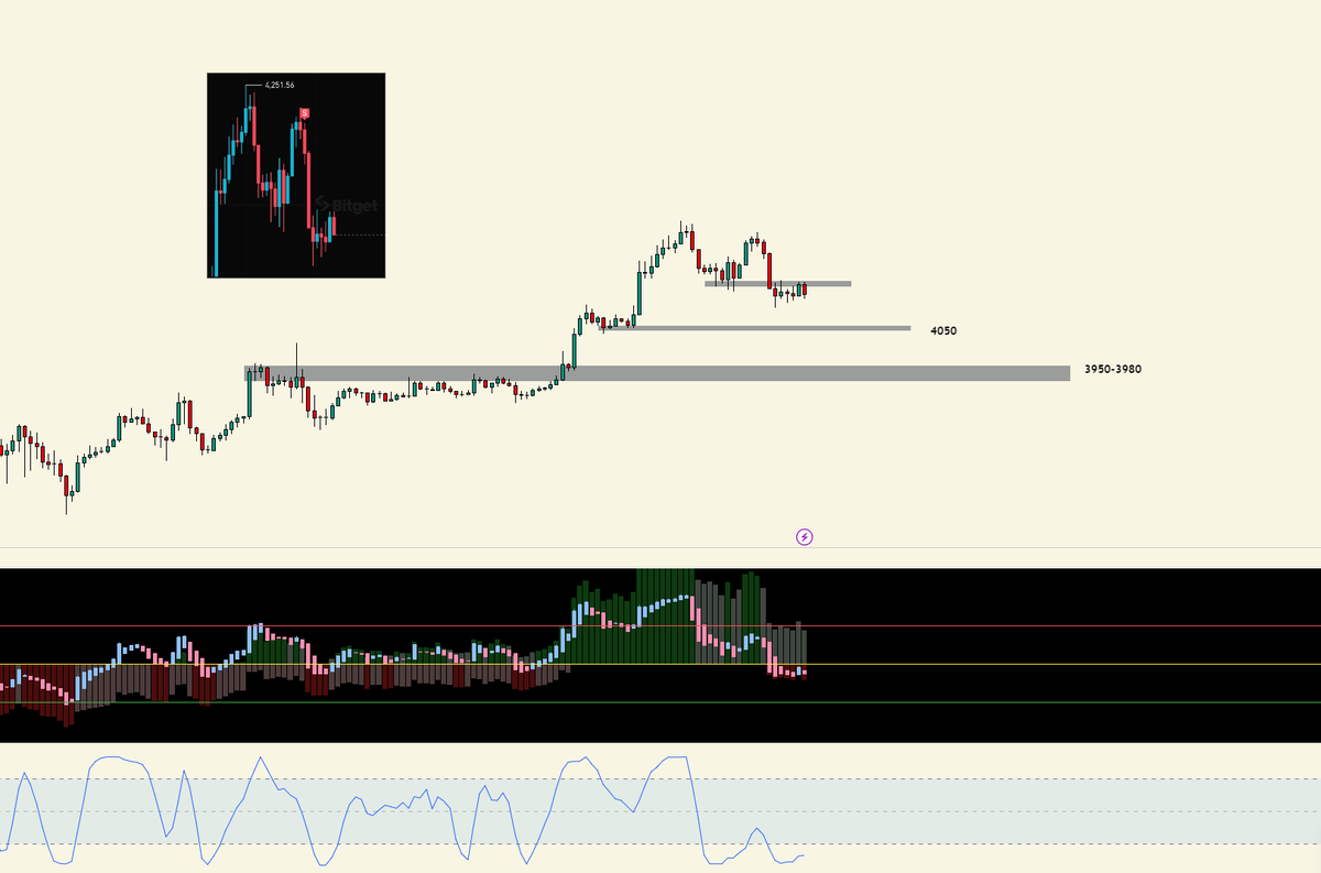 $ETH 破位,马上到达 3980-3950 区域了,可以开始做止盈准备了。