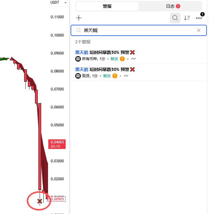 15分钟急跌70%80%90%分别警报一次或者更频繁