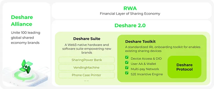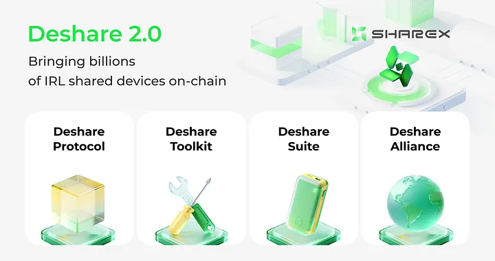 入选了BNB Chain MVB10的 @ShareX_Network 可以关注一下,早在 2017 年就深耕共享经济领域,刚发布的 Deshare 2.0,不仅提供标准化的 IRL 设备接入层,还把“硬件上链”落到了实处,做成 Web3 设备可信上链的行业标准,已经同时在服务多个国家的共享品牌了。