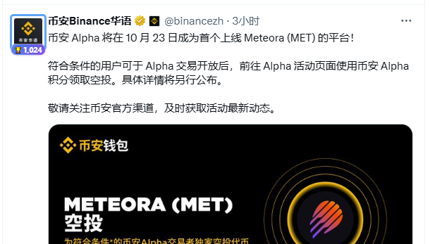 上线平台:币安 Alpha(时间未定)、币安现货 10 月 22 日 23:00
