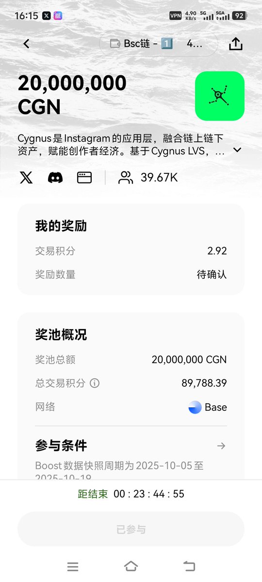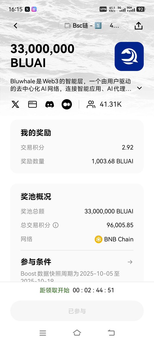 奖励金额分别是 33 M $BLUAI 代币和 20 M $CGN 代币