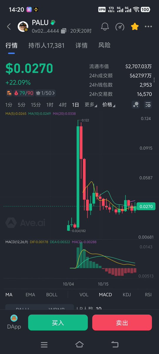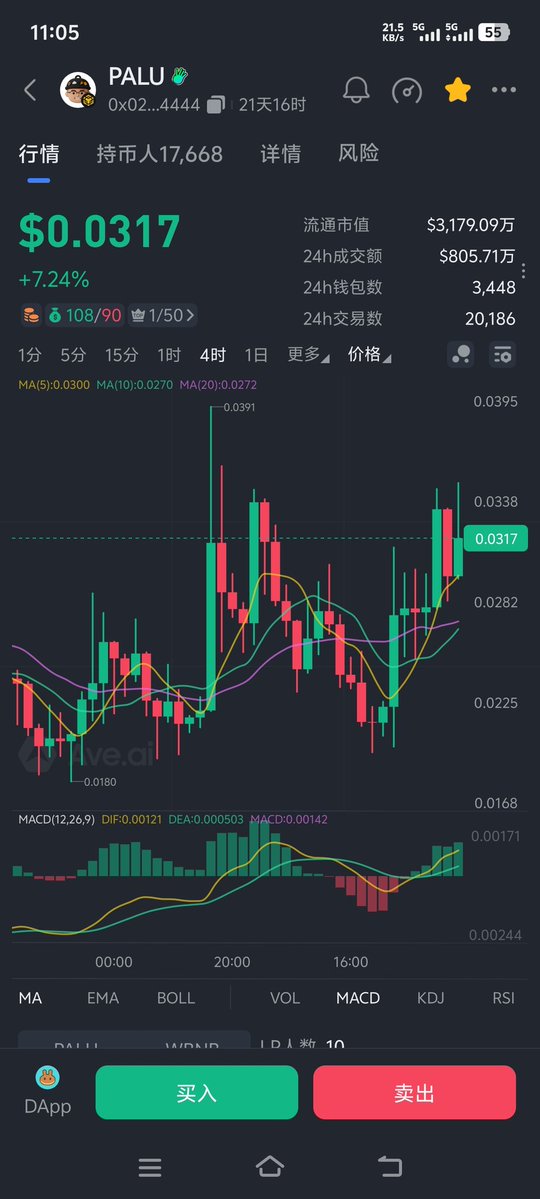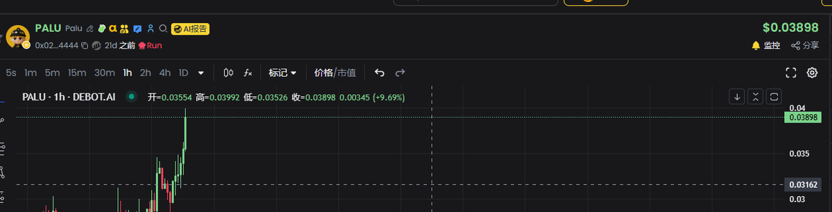 3⃣昨天力推的 $Palu 也开始涨了,目前市值来到了3200万附近,昨天跟着上车的也盈利快20%了,继续持有
