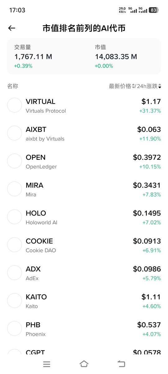 2⃣山寨板块开始冒头的是Ai人工智能板块,Virtual Aixbt领军,依然有希望引领一波山寨反弹热潮,同概念标的 $cookie $cgpt $Wld $Arkm 等等