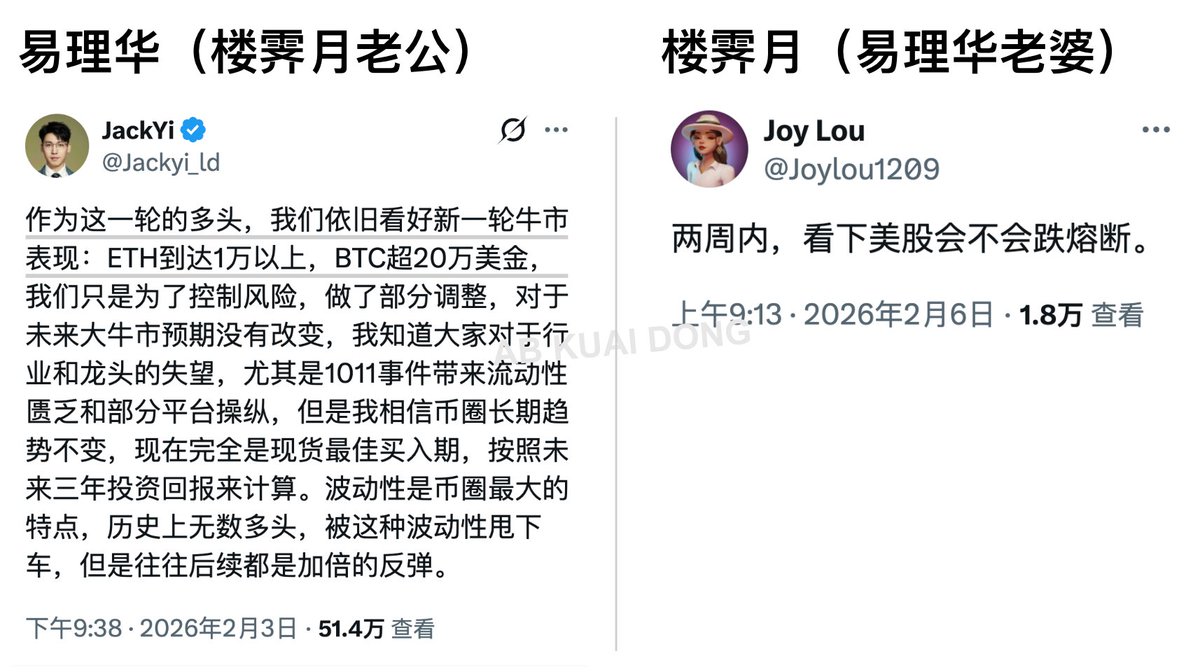好家伙,夫妻两必须给有一个嗝屁,是吧! 易理华 仍不平仓硬扛看多 楼霁月 押注美股暴跌熔断