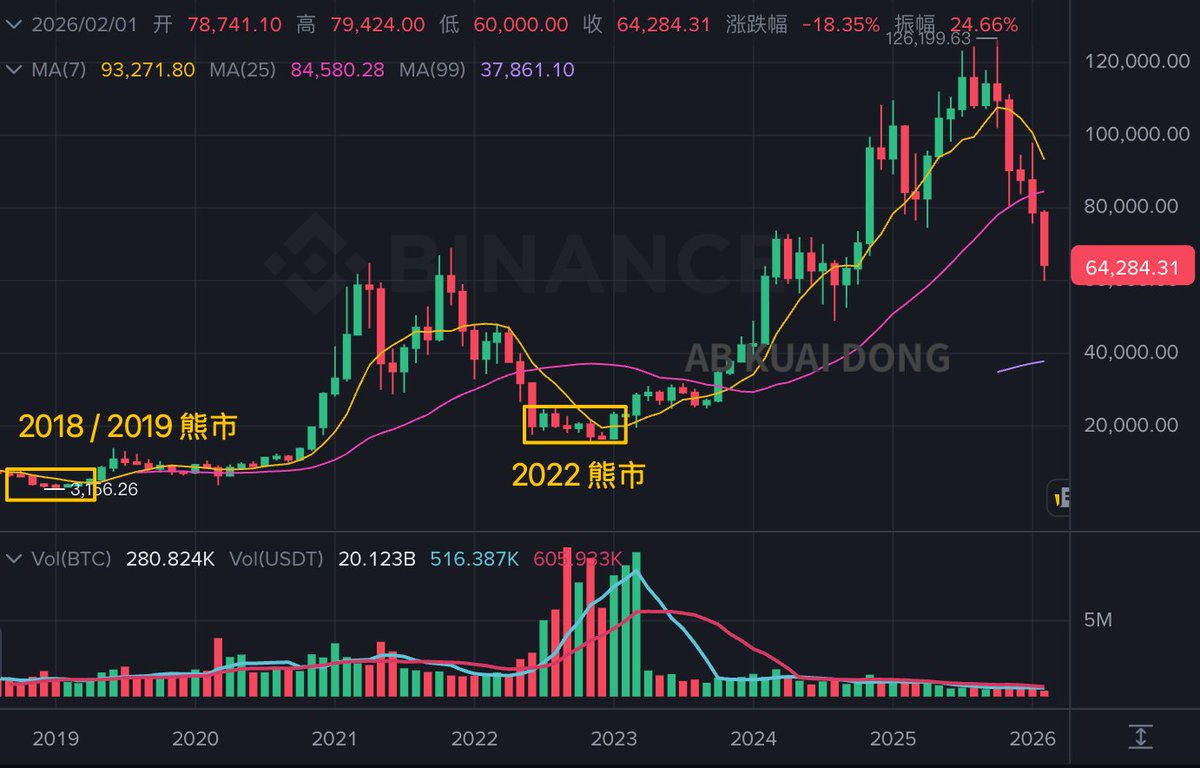 帮大家回忆一下,2019 年的熊市,大概是 6 年前。 虽然自高点已经下跌,但比特币较那会累积上涨了 562% 左右,人总是会变的。