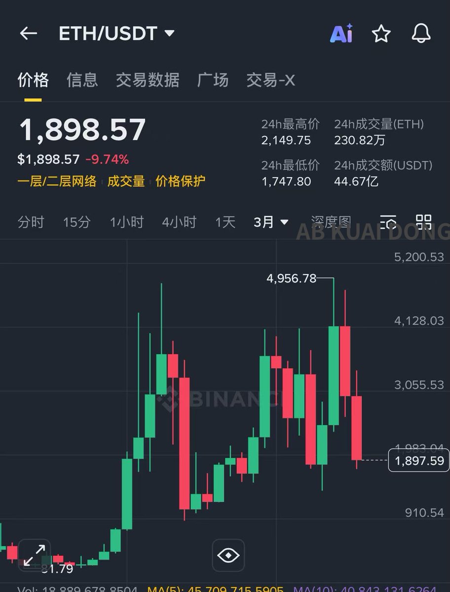 易理华清算价格 1640 美金 ETH 当前 1950 美金 还有 15% 跌幅的距离区间 希望所有人幸运,大清算不会发生