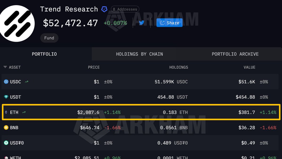 结束了,全都结束了。 易理华旗下 Trend Research,已清仓链上账户的所有 ETH,30 分钟前他们将最后的 534 枚 ETH,充进了币安交易所。 目前链上仅留下 0.183 枚 ETH。