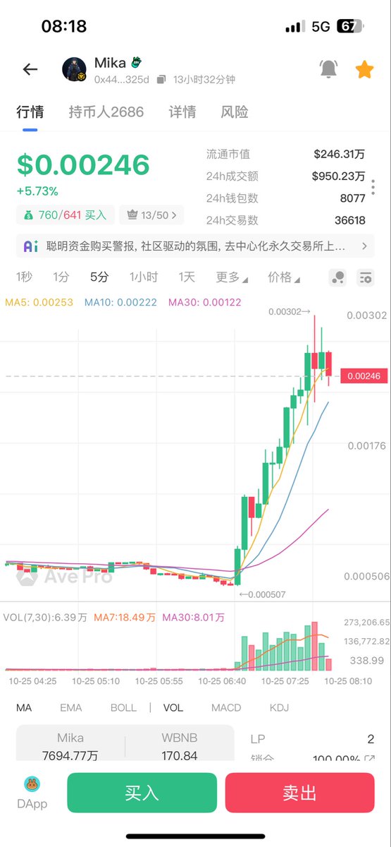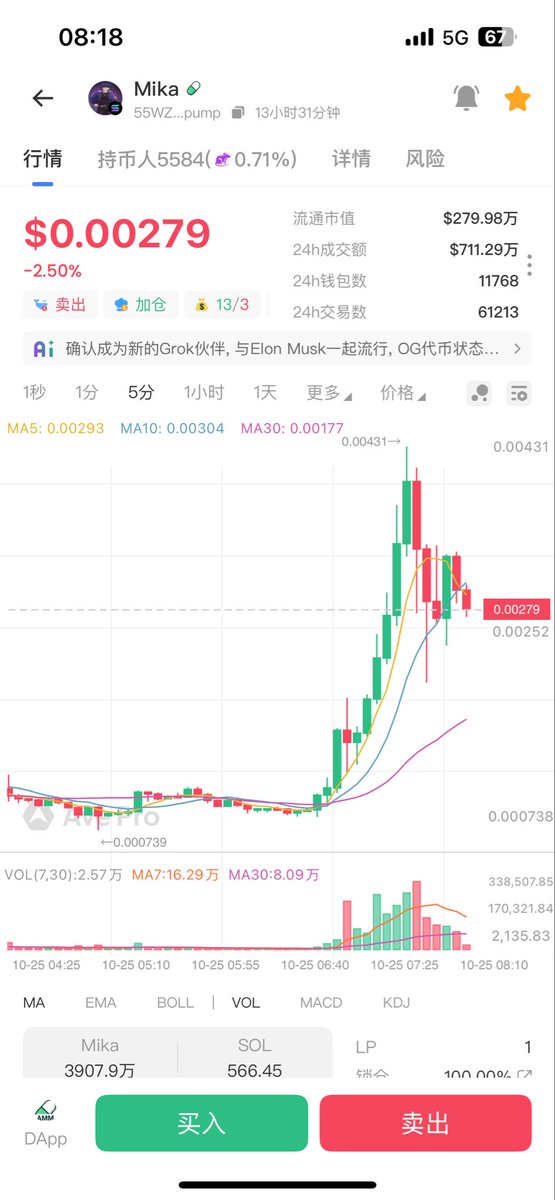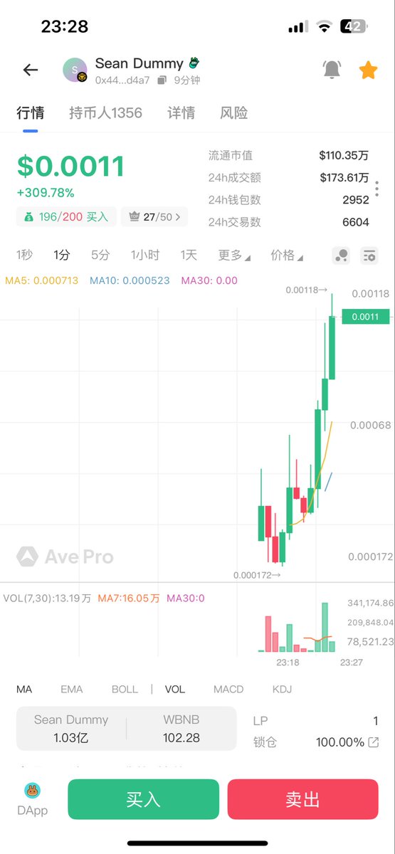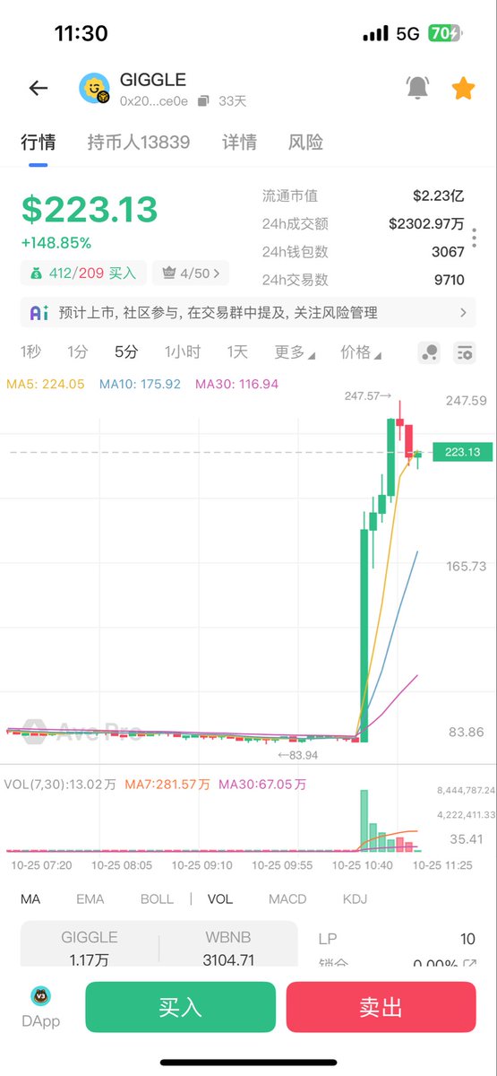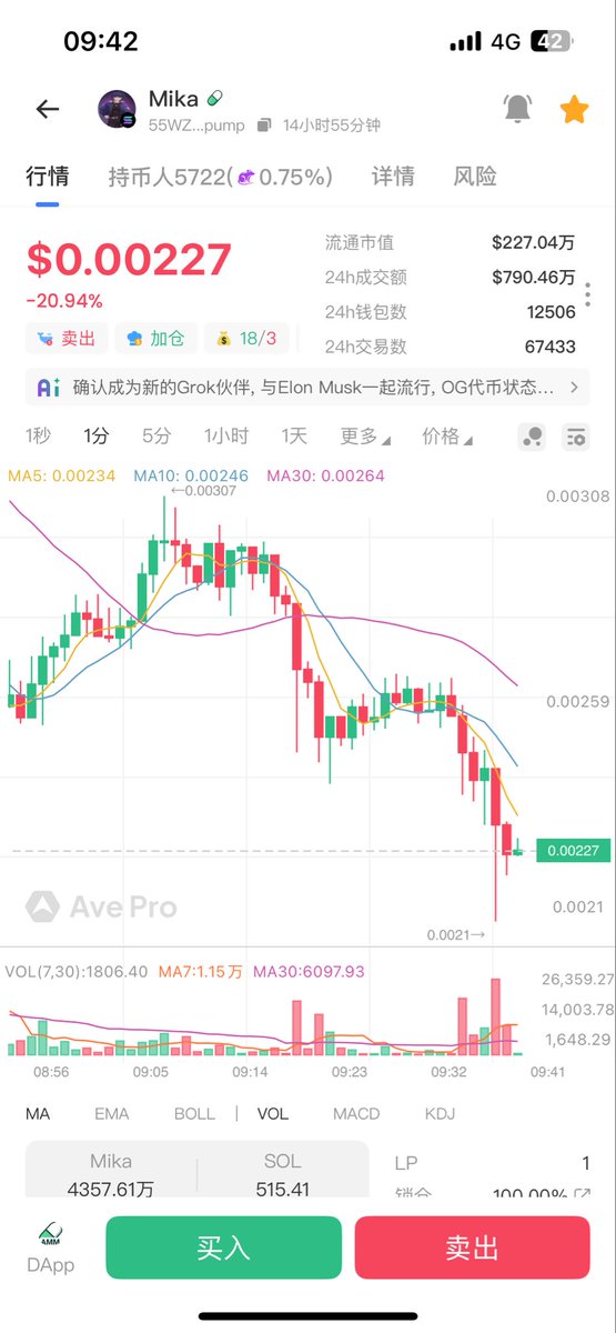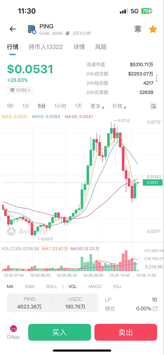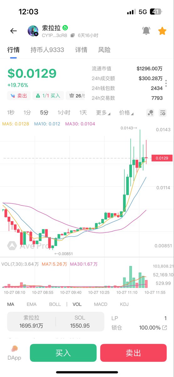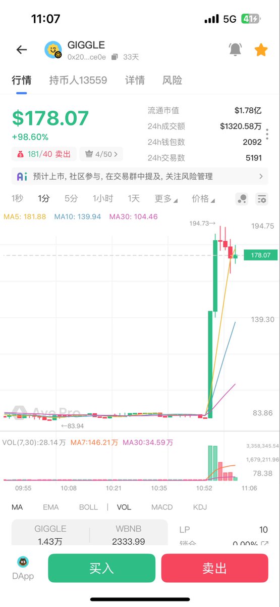 索拉拉 昨天镭射猫刚上车 @Mable_Jiang 也一直在推进早上跌到7m,刚涨到14m