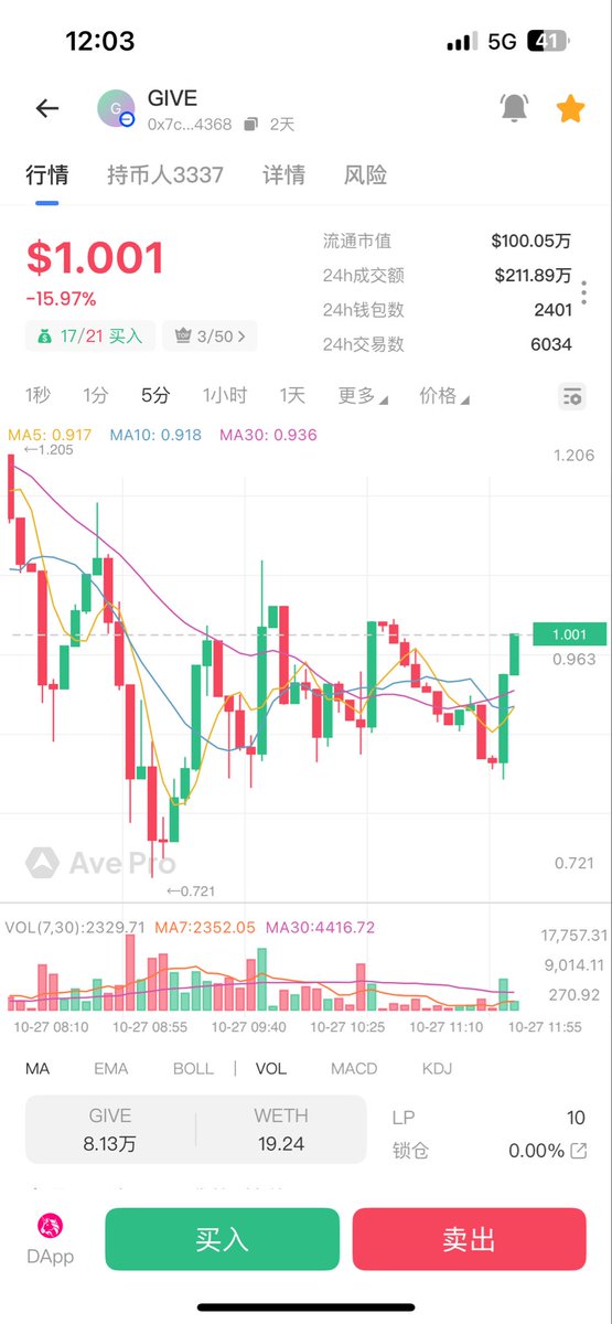give(base)也是做慈善的,捐款达到74w美金,蹭官方预期,目前1m