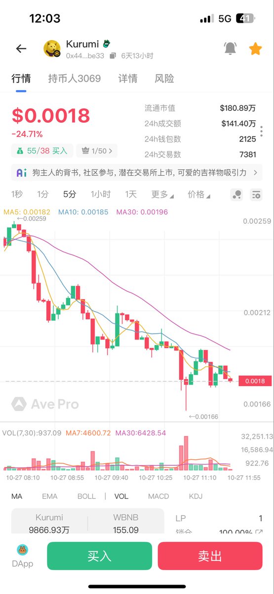 kurumi(bsc)好像是内罗那些人在搞地推昨天最高2.6m,现在1.8m