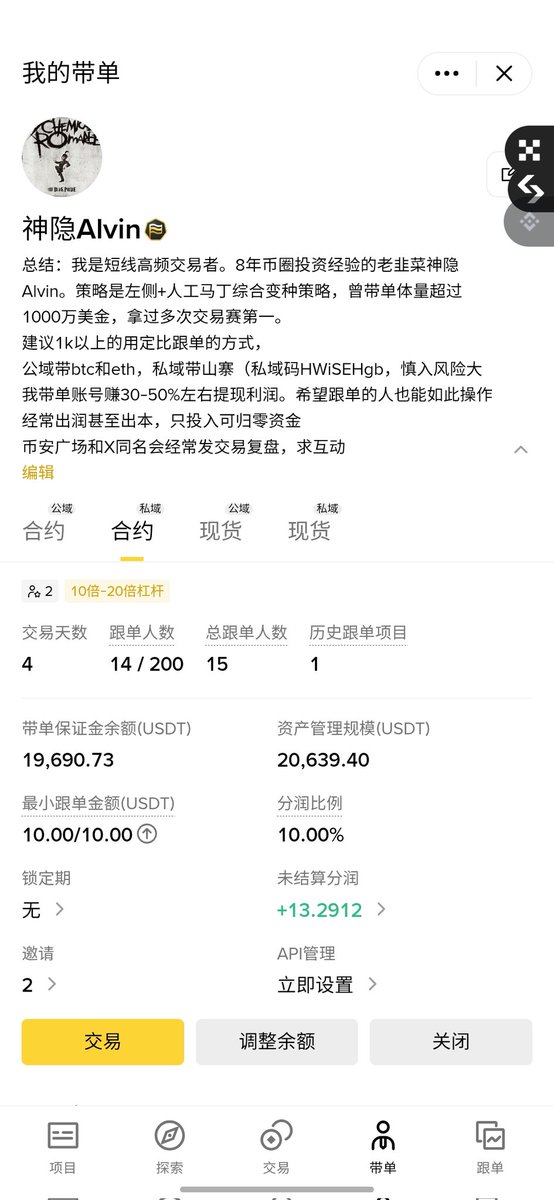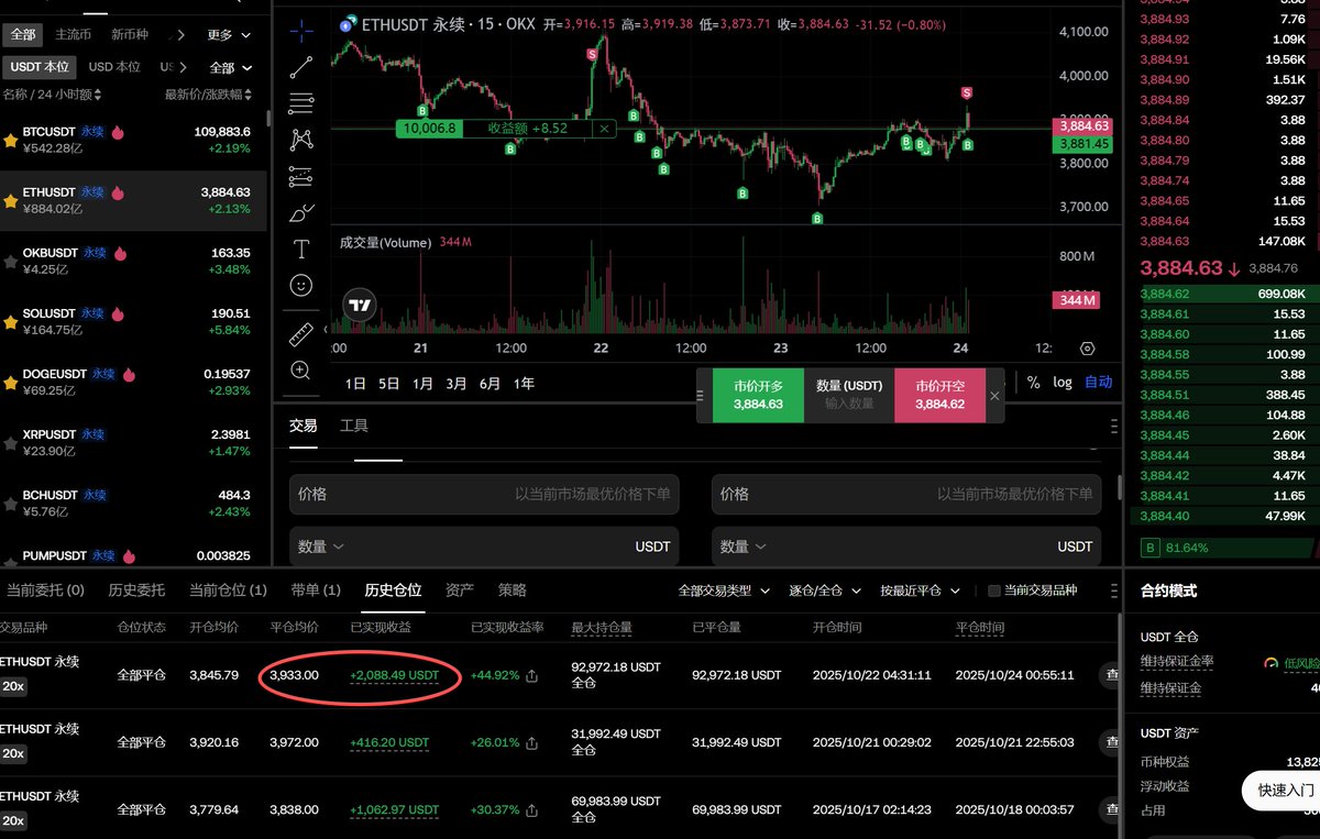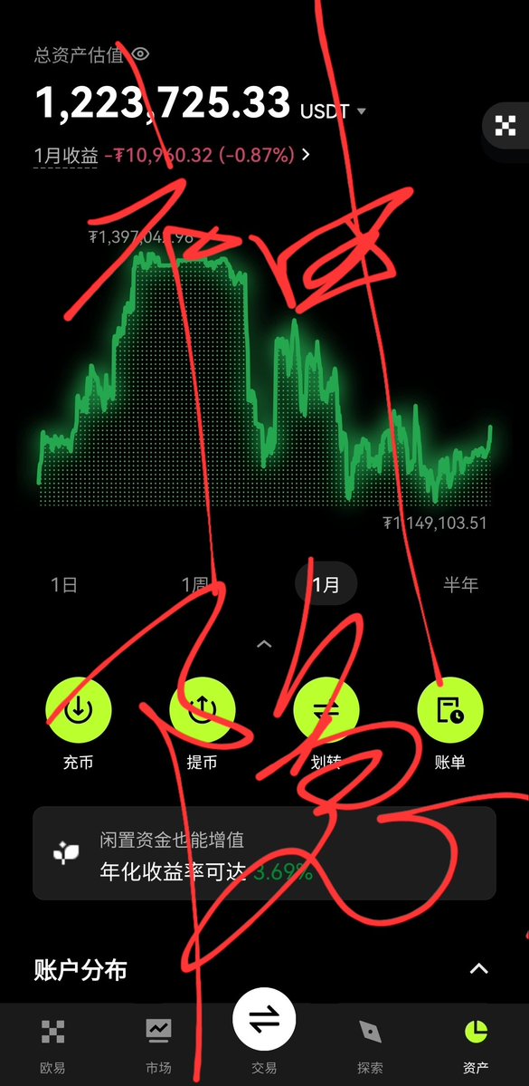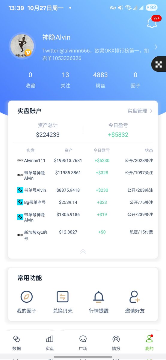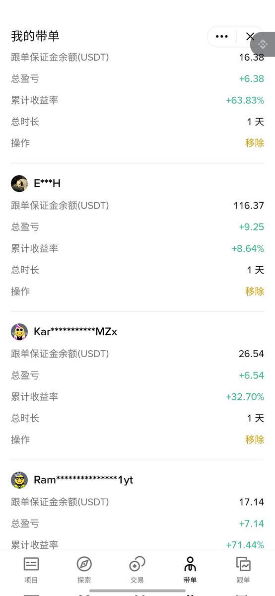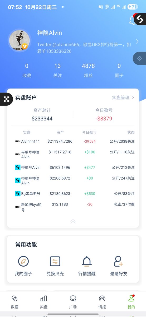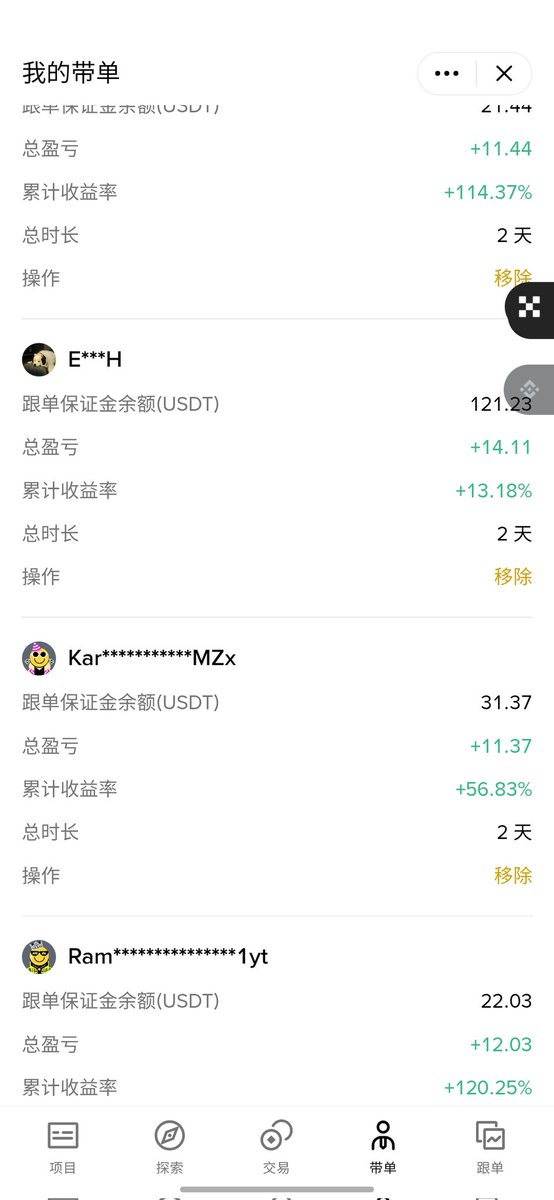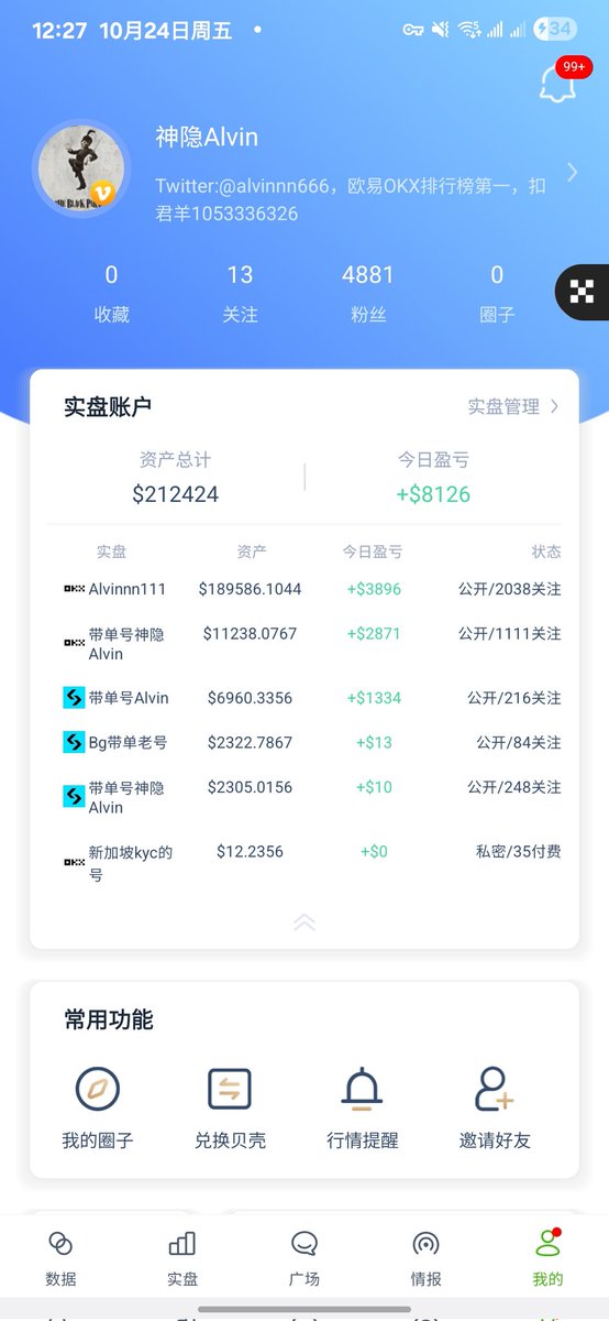 #OKX 放了1w刀,10.12当天变成3.7w后我又重置成1w,现在赚了差不多5k,#banance 我放了4000还是5000,到现在也是赚了5000. 同时我在 #bitget 放了2000,现在赚了6k左右变成了8.4k (三个平台均实盘公开可查)