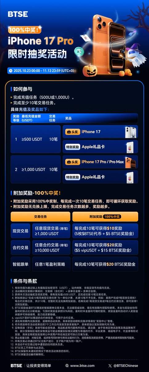 BTSE最新活动——iPhone17 限时抽奖活动,100%中奖!📱 @BTSEChinese