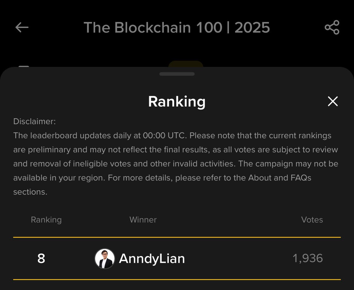 Consider voting for "Anndy Lian" The Blockchain 100 2025 Presented by @binance Thanks. https://t.co/jf5R9bvehE https://t.co/KUVeyXj4Qs