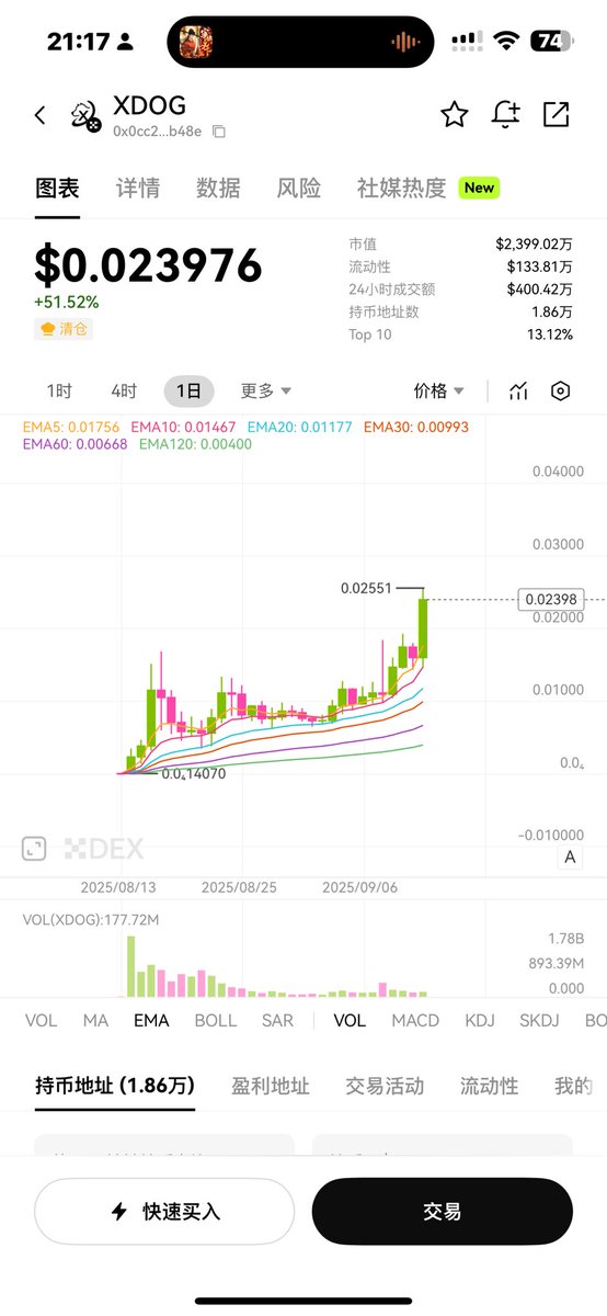 目前我在链上赚到的钱也够我生活的很不错了,我对车表奢侈品这些也没有什么追求,也不想去对标那些链上顶级地址的辉煌战绩,之后我的主要策略就是保持对链上新生叙事的关注,再抓住一两次底部大机会即可。所以我即使最近赚了不少,也没有大仓位追高最近的任何热点币,只要是我没有在底部买到的币,即使叙事很好,我也都只是轻仓买入防止踏空。