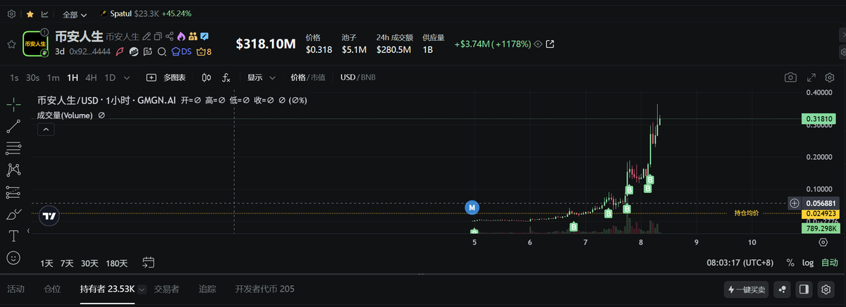 我说过“币安人生”是一个至少价值10b的标的,这并不是我在信口开河满嘴胡言,而是我真的看到了一个打破现有meme格局,一个破圈的希望 我是经历过shib时刻的,那时候我见到的每一个人都在讨论shib,至少百分之九十的人都在买入shib。可是这轮币圈再没有跑出一个这样的原生meme,再没有一个meme完成从0到几百亿的奇迹 可是我在“币安人生”上看到了这样的希望,它正在努力成长为第一个破圈的中文meme,它正在铭刻这个时代每一种不同的币安人生 如果“币安人生”这个币中途夭折在了几m甚至是几百k,你大可以说我是可笑的理想主义者。可是现在你看着它k线上的40m,我们都问问自己内心,我说的10b真的是一点希望都没有的空谈吗。“币安人生”是真的有希望给枯寂无聊已久的meme市场带来一场变革风暴 如果你觉得这一切有那么一点希望去完成,支持100u就足够了,炒币是需要一点信念的,“币安人生”是不该错过的那个可能性