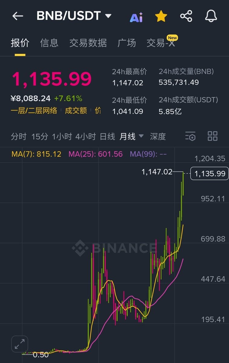 $BNB 没有让大家失望,一次又一次创新高,预计年底会突破1500$大关,让我们拭目以待。#Binance