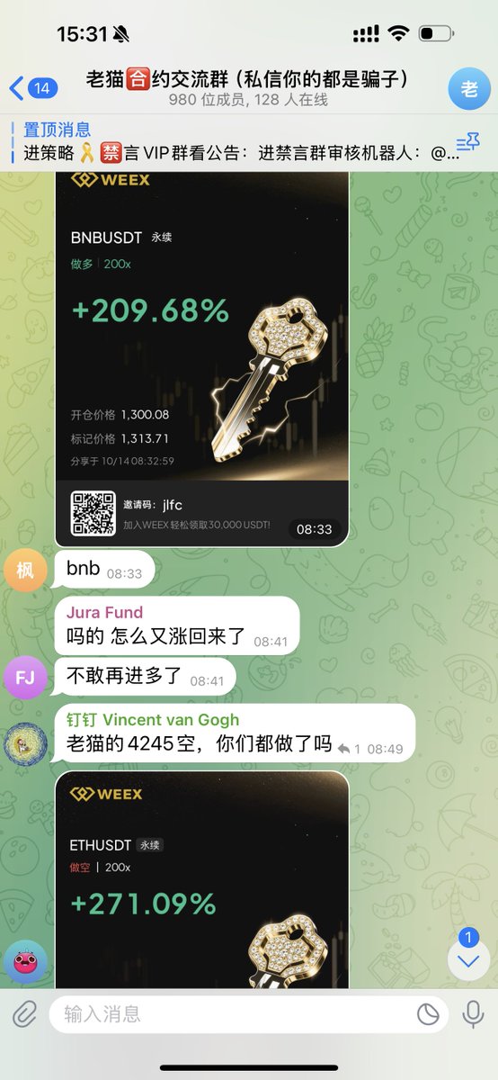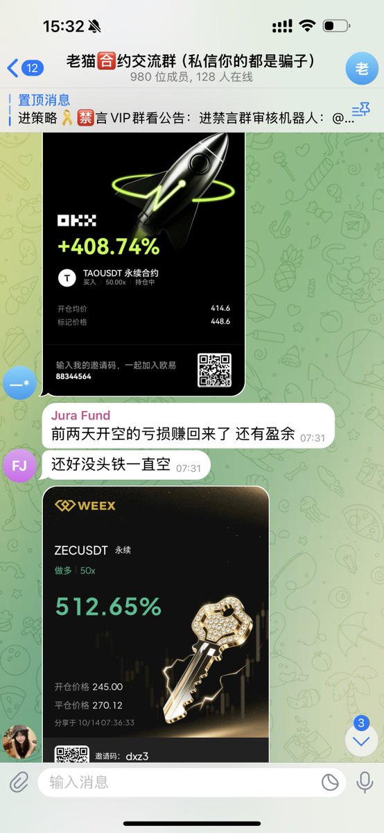 不管你新韭菜还是老韭菜,如果你玩合约一直没有得到有效突破和盈利,建议你先跟单跟上操作玩,别自己去瞎开,别上手就天天亏钱,这样你再币圈迟早混不下去,如果你对合约开仓方面什么位置进,观察什么消息类,怎么看K线等等基础问题,在老猫这里都能有效解决,不妨先来我的合约交流群看看,基本每天都有大市场分析,策略带单胜率更是高到100%。