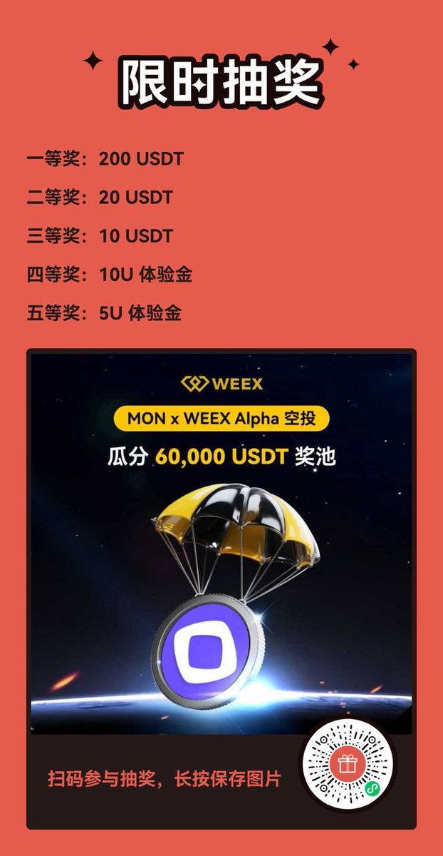 @weexglobal_ch 携手 MON 推出《MON x WEEX Alpha空投快闪抽奖》,参与门槛超低,奖励还特别实在。