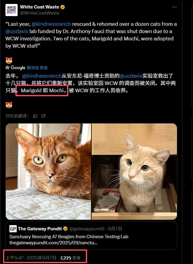 “Last year, @kindnessranch rescued & rehomed over a dozen cats from a @ucdavis lab funded by Dr. Anthony Fauci that was shut down due to a WCW investigation. Two of the cats, Marigold and Mochi, were adopted by WCW staff” 😻 https://t.co/i4qk9mp0hM