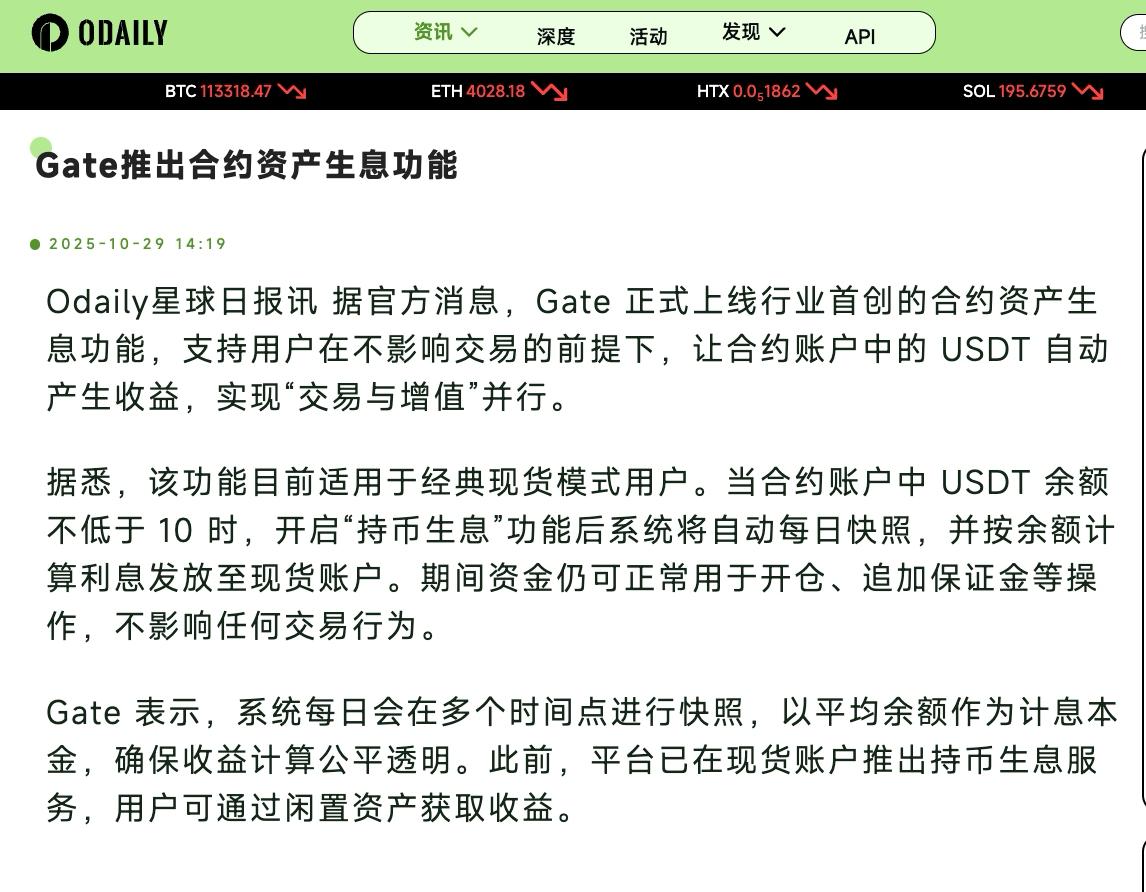 💡不同于现货自动计息,这次连合约账户也能“睡后收益”: