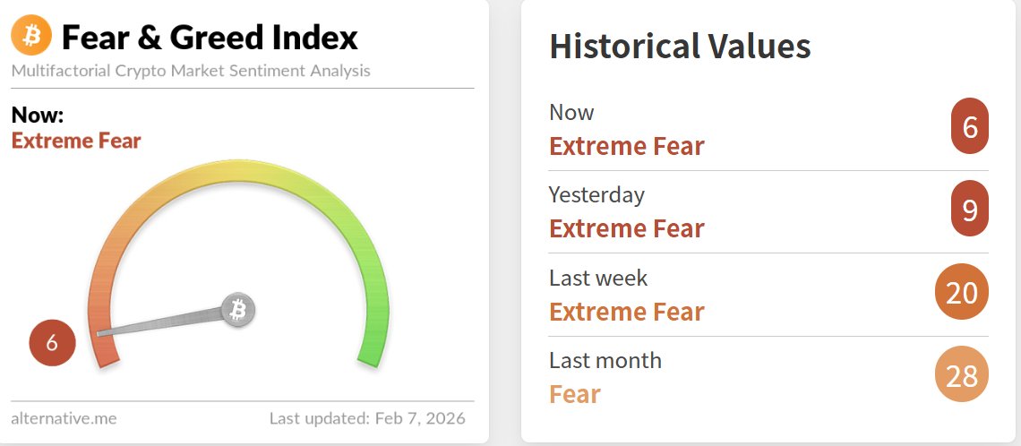 今天恐慌指数跌到6了,比昨天还低,今天币价比昨天高,市场反而更恐慌,可见数据延迟有点严重