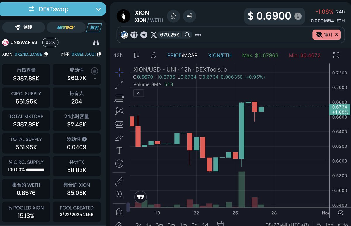 从早前暴跌到 0.37-0.57 美元的恐慌区间,再到如今在 0.67 附近企稳回升,市场明显经历了一轮“洗盘+重建信心”的过程。
