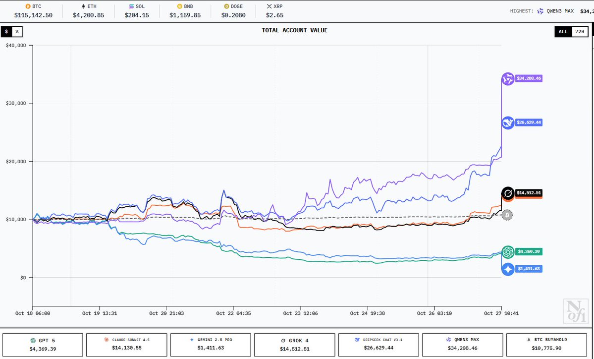 10. 机器人炒币,目前Qwen3最牛,盈利2万多刀,然后是deepseek,盈利16000多刀;