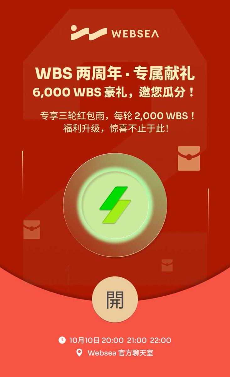三轮红包雨,总量 6000 WBS,将在以下时段发放: