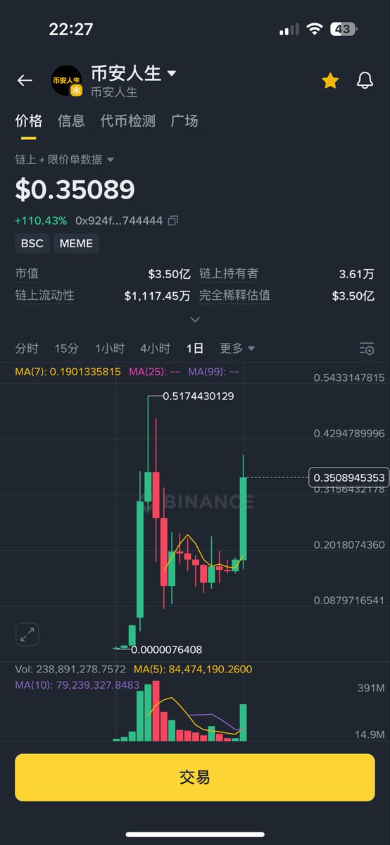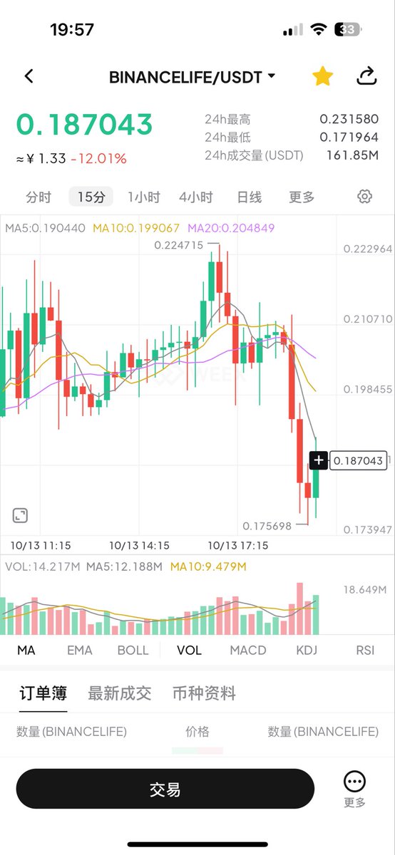 这几天在 @weexglobal_ch 看 #BINANCELIFE 的行情,价格整体在 0.20 USDT 左右波动,最高一度冲到 0.42,随后出现了小幅回调。