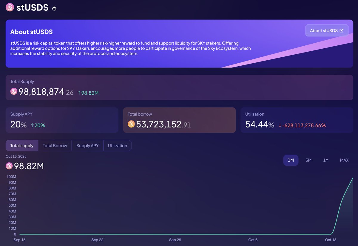 stUSDS的存款是给 $SKY 代币抵押借款的,风险等级最高,但在设计上与其他借贷市场隔离,初期LTV设置也很低,如果能接受这层风险,算是一个高息理财。