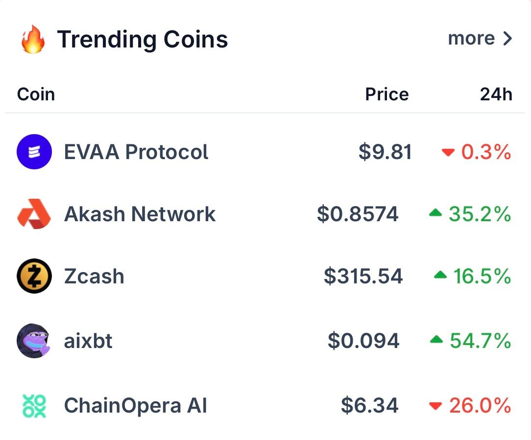 本周,$ASTER (@Aster_DEX) 领先,其次是 $COAI (@ChainOpera_AI) 和 $EVAA (@evaaprotocol)。