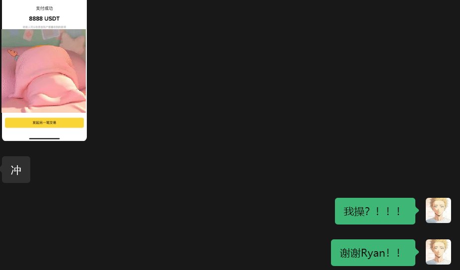 小群按头带大家买币,然后赚到钱后给他人发红包,形成正反馈机制。(图片是群友按头别人上币安人生,然后获得了8888u的红包正反馈,鼓励大家不断发大公报这种激励机制真的很重要。)