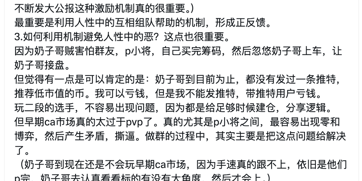 但早期ca市场真的太过于pvp了。真的尤其是p小将之间,最容易出现零和博弈,然后产生矛盾,撕逼。做群的过程中,其实主要是把这点问题给解决了。