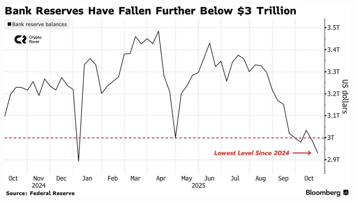 在之前的周期(例如 2018 年至 2019 年)中,银行准备金从约 2.8 万亿美元下降至 1.4 万亿美元。 此前,回购市场压力迫使美联储于 2019 年 9 月停止 QT,并再次注入流动性。 此后,美联储估算了“最低舒适准备金”