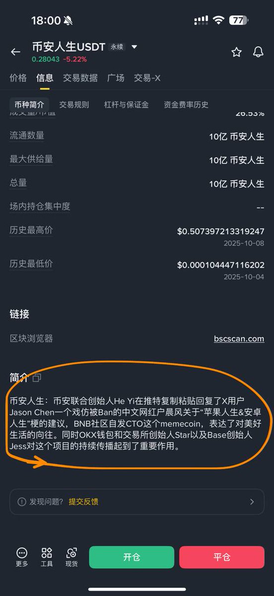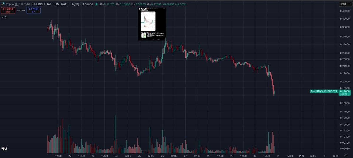 鹰杂喊币安人生也是同样的套路,纯靠收割散户流动性来吃短线的,币安人生这个币虽然名气很大,但你观察它的交易量和持仓量的变化就知道它现在的流动性是很差的;