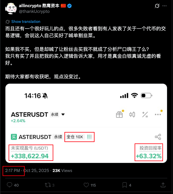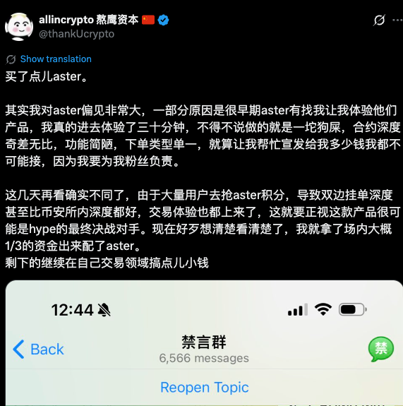 如果你还不信这垃圾现在是靠流动性来收割的,那你猜为啥现在aster涨到1.2了,鹰杂为啥不晒盈利图了,因为人家仓位早没了,只吃韭菜的流动性稳稳带来的钱,不吃博弈行情本身的钱;