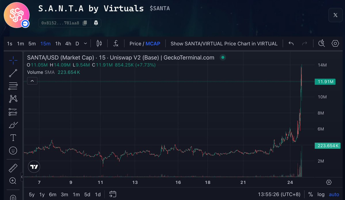 x404板块 Virtual上面的相关代币是最多的 去年就有相关代币出来 santa都是去年圣诞节的代币了