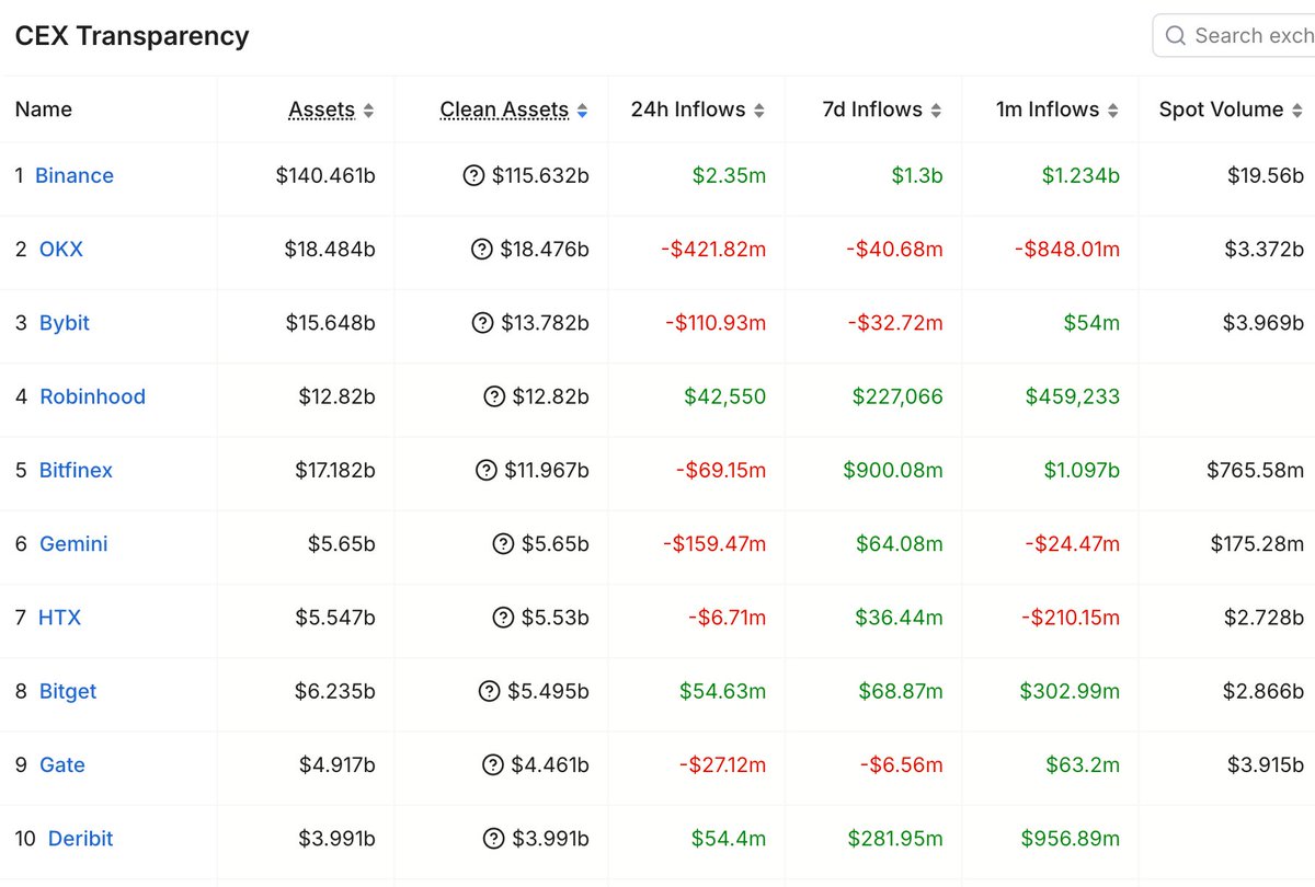 尽管声称“大规模退出”,@DefiLlama 的透明度数据显示,@binance 在过去 24 小时内录得 7 亿美元的净流入。如果用户集体离开,我们会看到