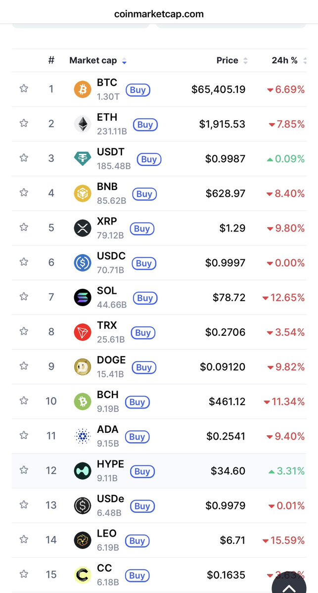 10. 宏观背景下加密整体回调,BTC主导率下降,Canton CC为少数相对抗跌前排资产之一