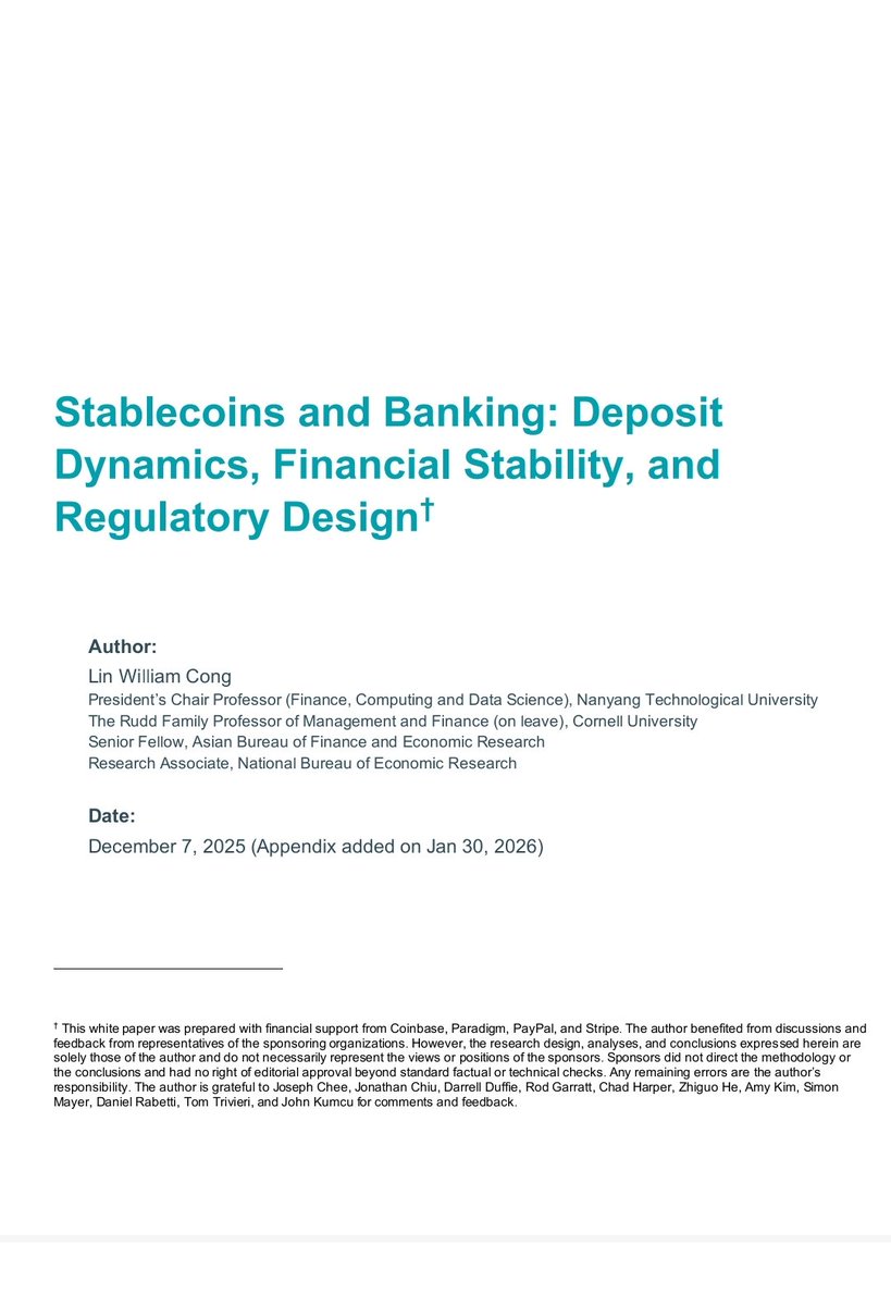 林威廉·丛(Lin William Cong)教授最新的关于稳定币的论文研究。William教授是南洋理工大学金融、计算与数据科学教授,同时是康奈尔大学教授(休假中)、亚洲金融与经济研究局高级研究员,以及美国国家经济研究局研究员。