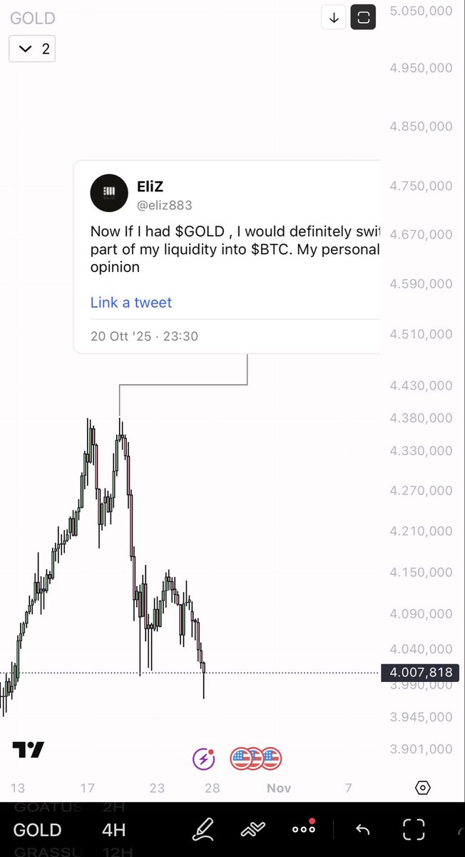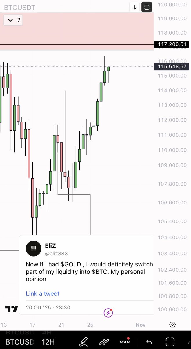 Now If I had $GOLD , I would definitely switch part of my liquidity into $BTC. My personal opinion