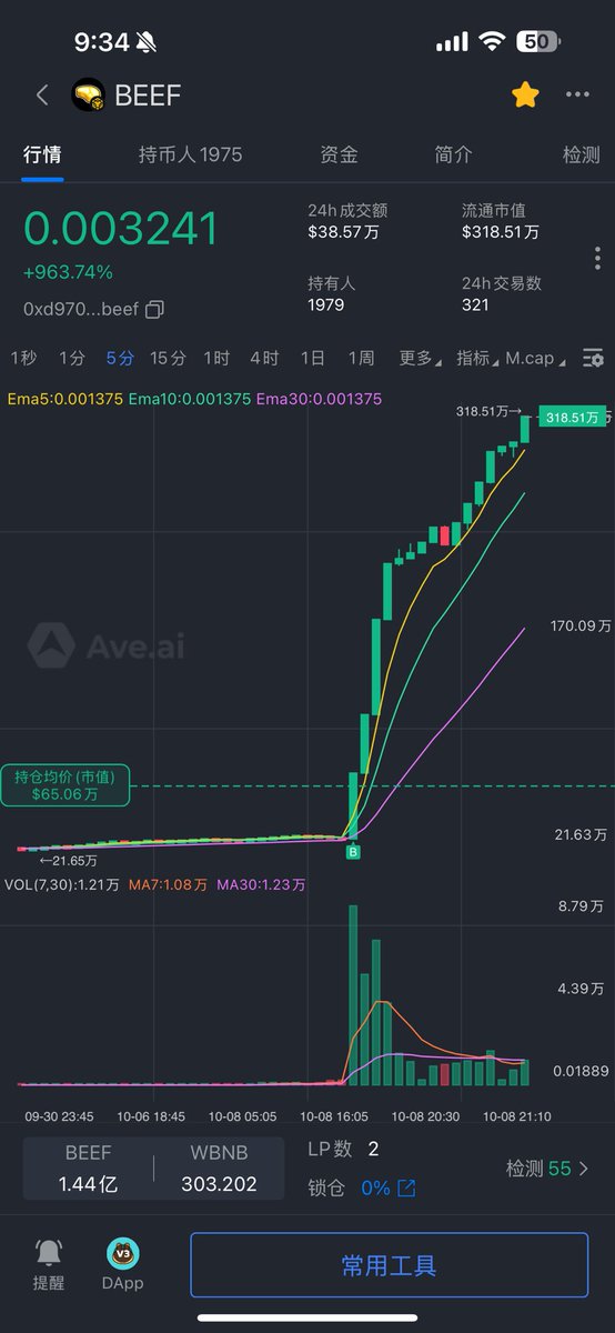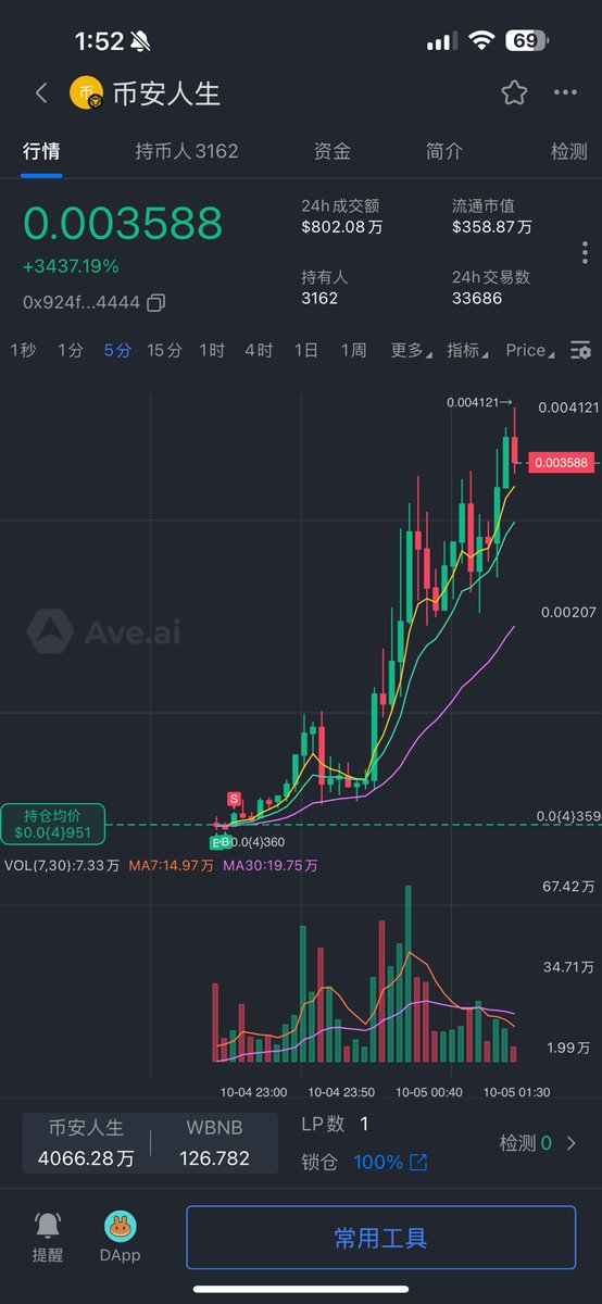 兄弟最近才开始出手,继昨天福幂幂大倍数后,刚刚bsc的402他又60倍了,我也撸了个账面3倍实际翻倍跑了