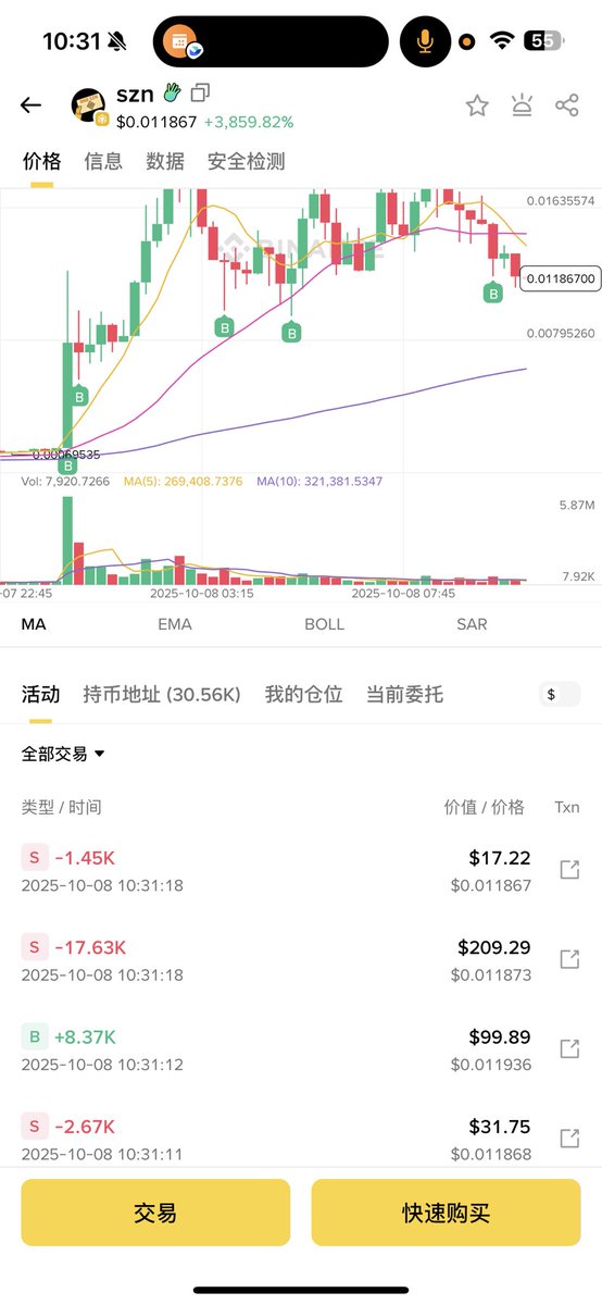 打了我好几个电话要叫我买,群里3个朋友在分任务给我打电话,现在想起都还好感动(无奈那会我手机调免打扰再睡回笼觉😭😭😭😭醒来的时候川普已经6.88了,我才上车,然后兄弟一直叫我拿住,我成本不一样,翻倍出的本金,兄弟很有格局一直说拿到100刀,后来直到川普老婆发币才卖出,还有好几个 $swarms 等等几个相互打气拿住和卖 )