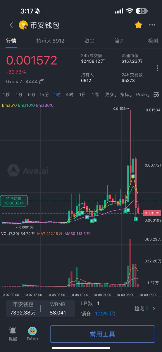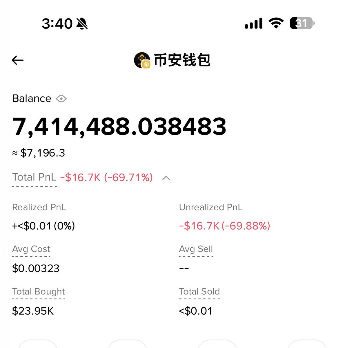 虽然上了现货利好落地变利空,按我以前的交易策略是要止盈了,有过会洗盘的预期,但到底是低估了meme得洗盘幅度或者是潜意识🙈直接给我跌麻了,每当朋友跟我实时播报一次价格的时候,我就告诉自己,再坚持一下🙈以至于到了现在的价格,那止损是什么?不存在的,大不了归零,从头再来!