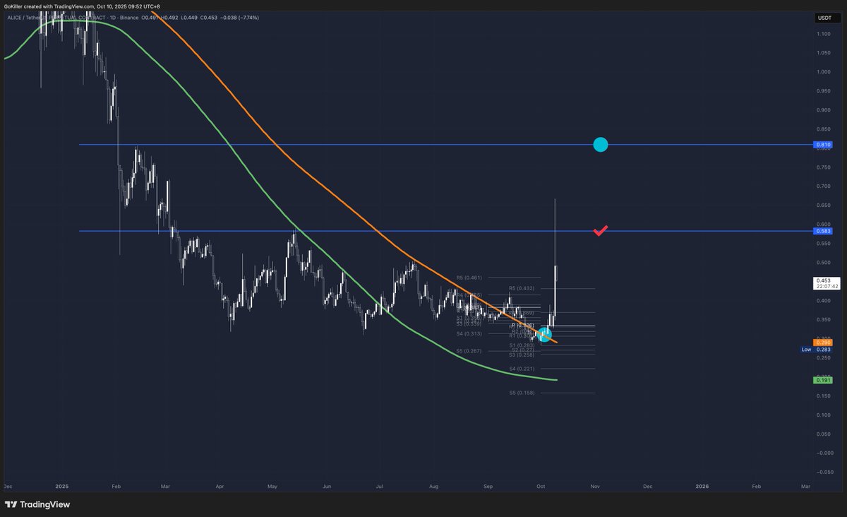 昨天发现的alpha: ALICE 游戏赛道 完全符合本人alpha选币标准 随后即开始拉盘,命中TP1 重点:全部为大群免费上车👇