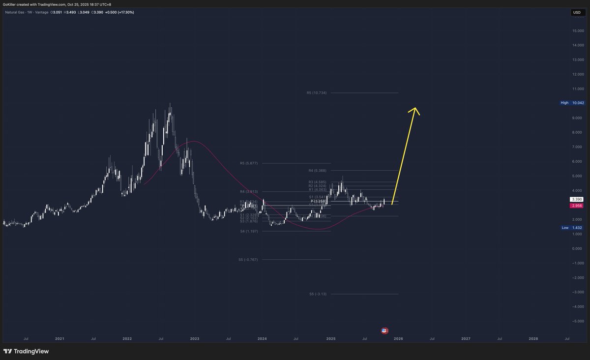 重磅机会—天然气即将启动 1. 周线HMA突破 2. 周线pivot point之上 3. 天气开始降温,需求增加 4. 天然气呈现明显的季节性行情 天然气代码- NG(natural gas) 开户和交易地址: 完成kyc ,进入tradfi 即可开始做多NG👇