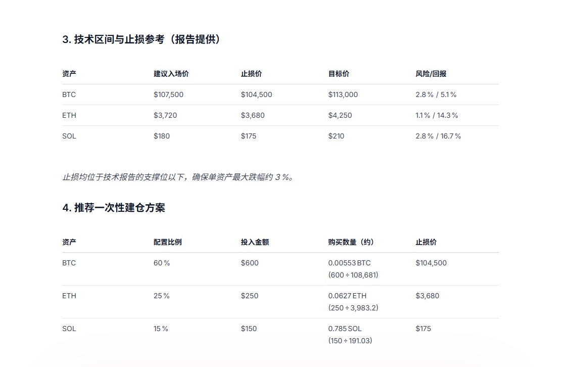 ▶我需要的是分析和建议,最终由我手动执行。 禁止使用杠杆,只进行现货交易 我只希望投资 BTC, ETH 和 SOL