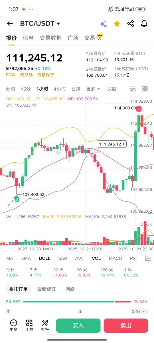 难道说?昨天 $BTC 插针到107402,挂的108047成交了