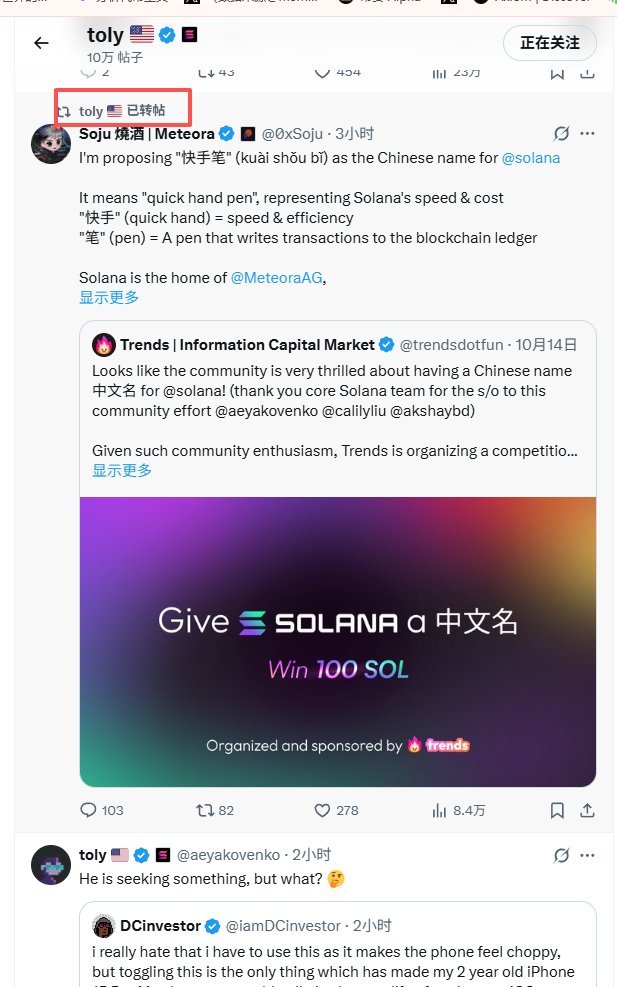 现在toly @aeyakovenko 带货能力这么差了吗 别最后bsc的超越了sol