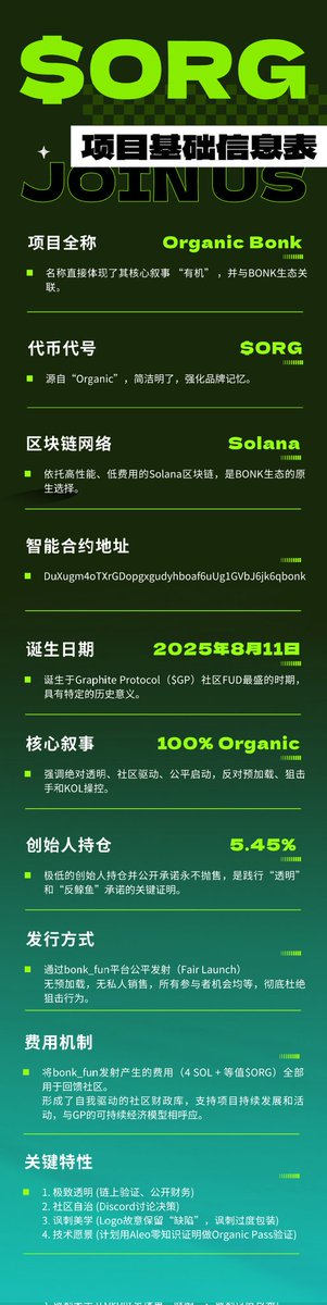 Graphite Protocol( $GP)在Solana生态凭借 bonk_fun占meme币市场80%,国库1680万美元,却在2025年因FUD(排放争议、透明度质疑、KOL炒作)失信,社区“有机”精神淡化。社区成员推出Organic Bonk( $ORG,合约地址CA:DuXugm4oTXrGDopgxgudyhboaf6uUg1GVbJ6jk6qbonk),以透明(公开钱包,顶级持有者5.45%)、去中心化(拒狙击手)对抗FUD。$ORG市值飙至百万,交易量超15万,通过Discord(@Organic_Bonk重燃热情。" target="_blank">https://t.co/sMmaGehIAn)和@Organic_Bonk重燃热情。